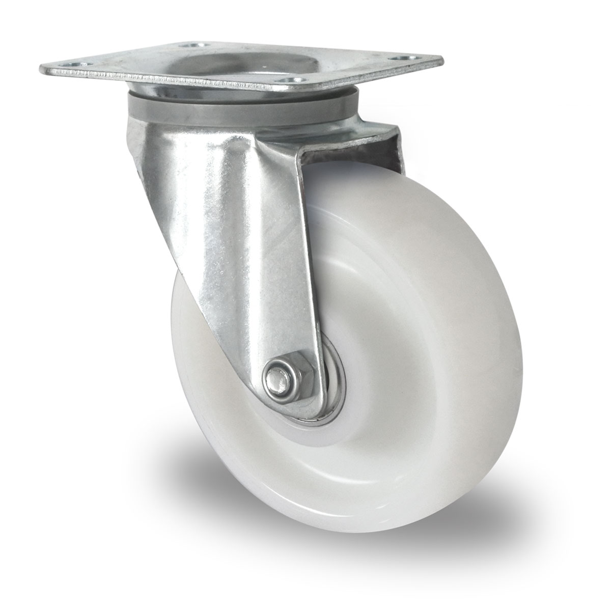 NYL är ett industrihjul med bana och nav i nylon 6 (polyamid 6) med dubbla kullager.